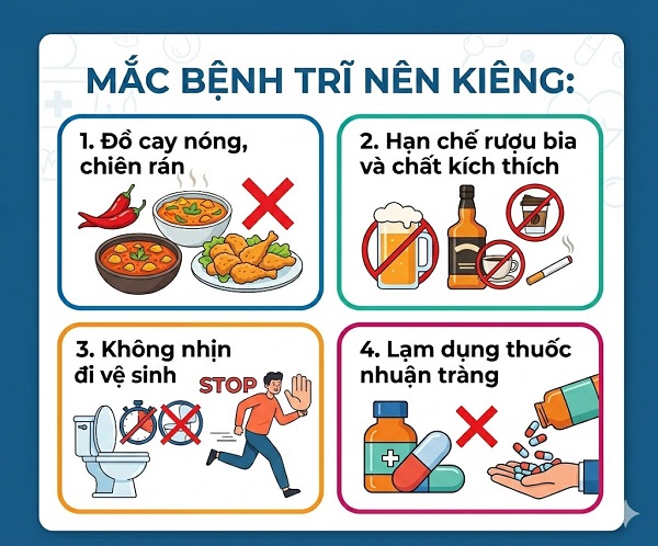 Dù đã biết ăn gì để trĩ thụt vào, người bệnh vẫn cần lưu ý một số điểm quan trọng: